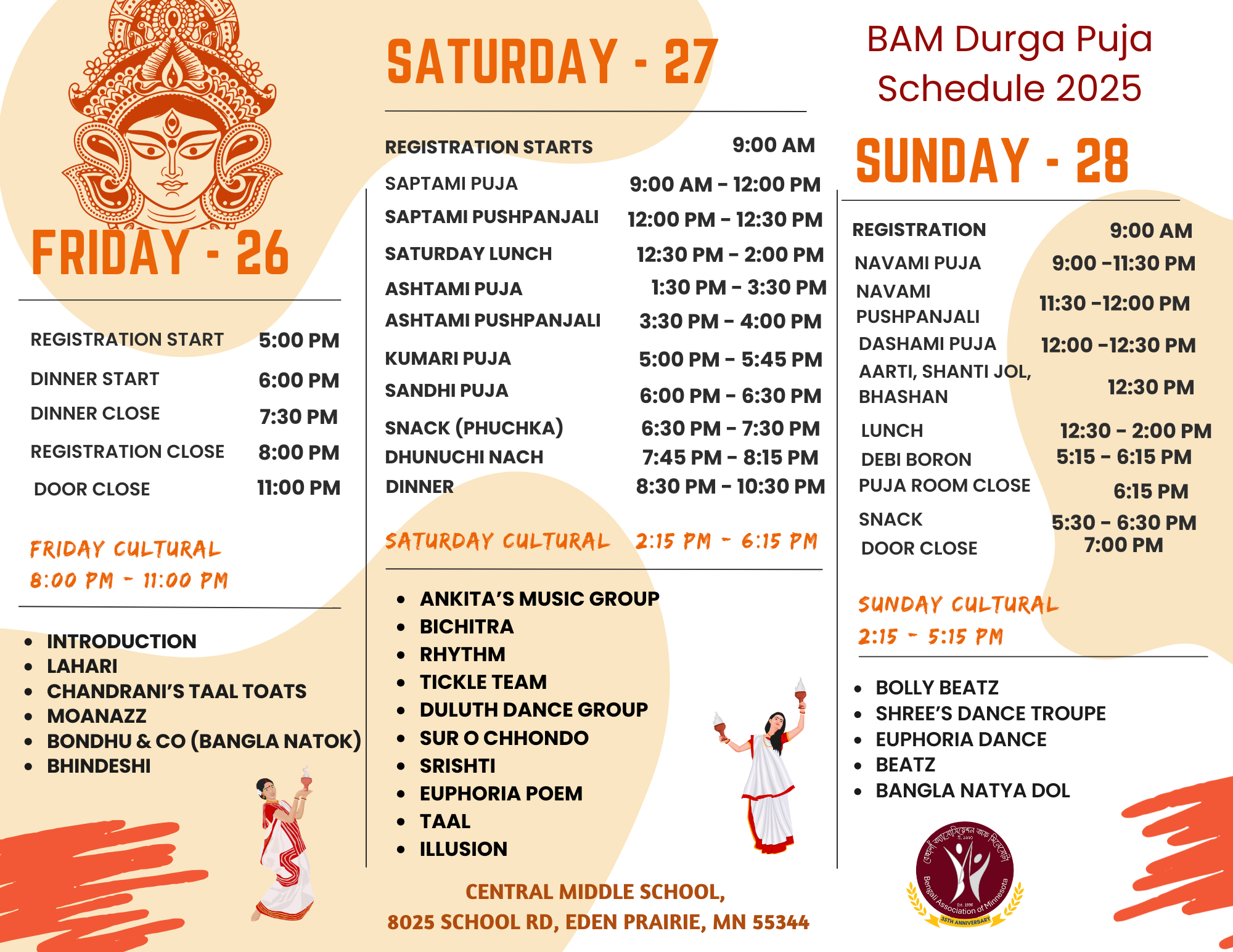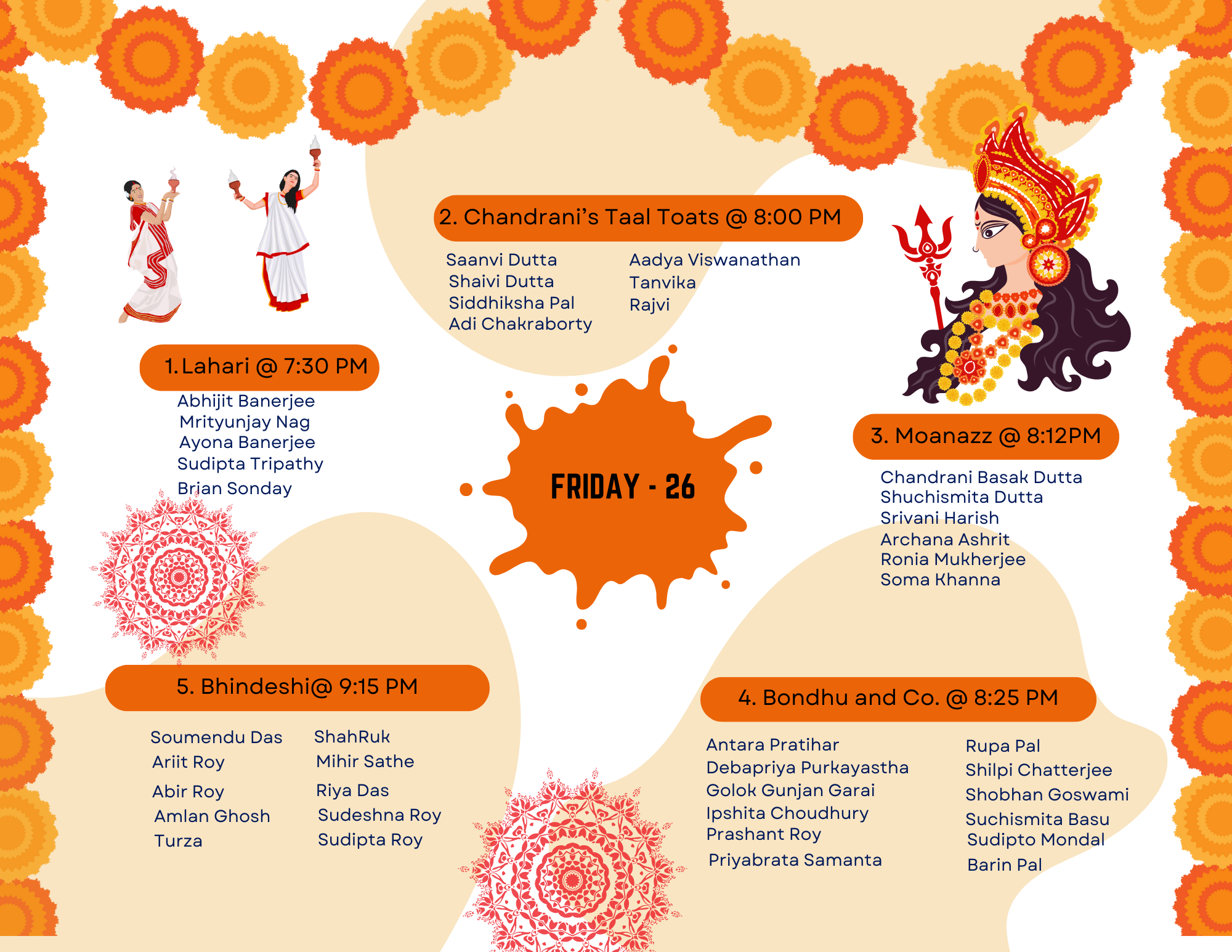 Most awaited Bengali festival… Durga Puja 2025 (Sep. 26-28th)